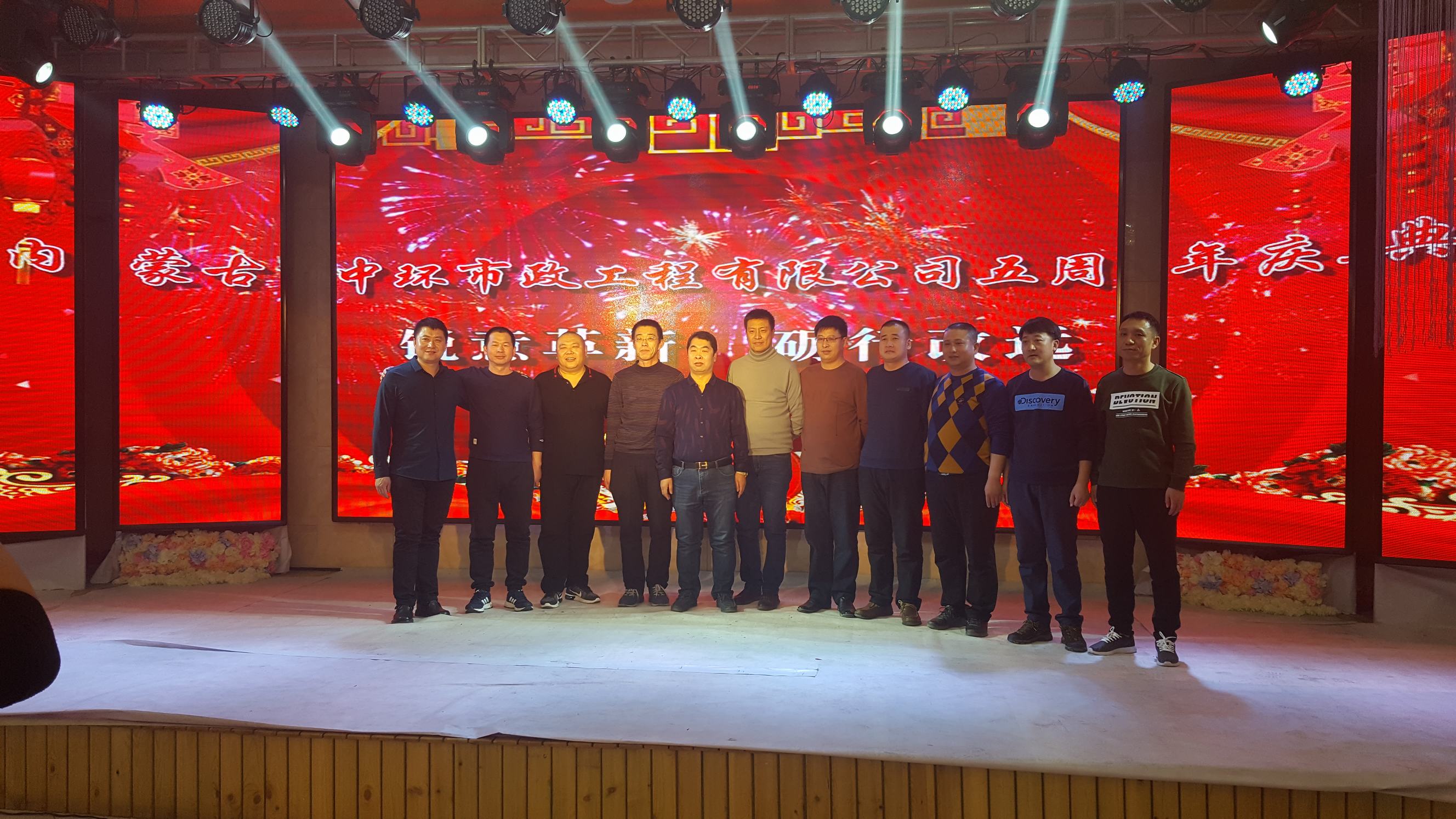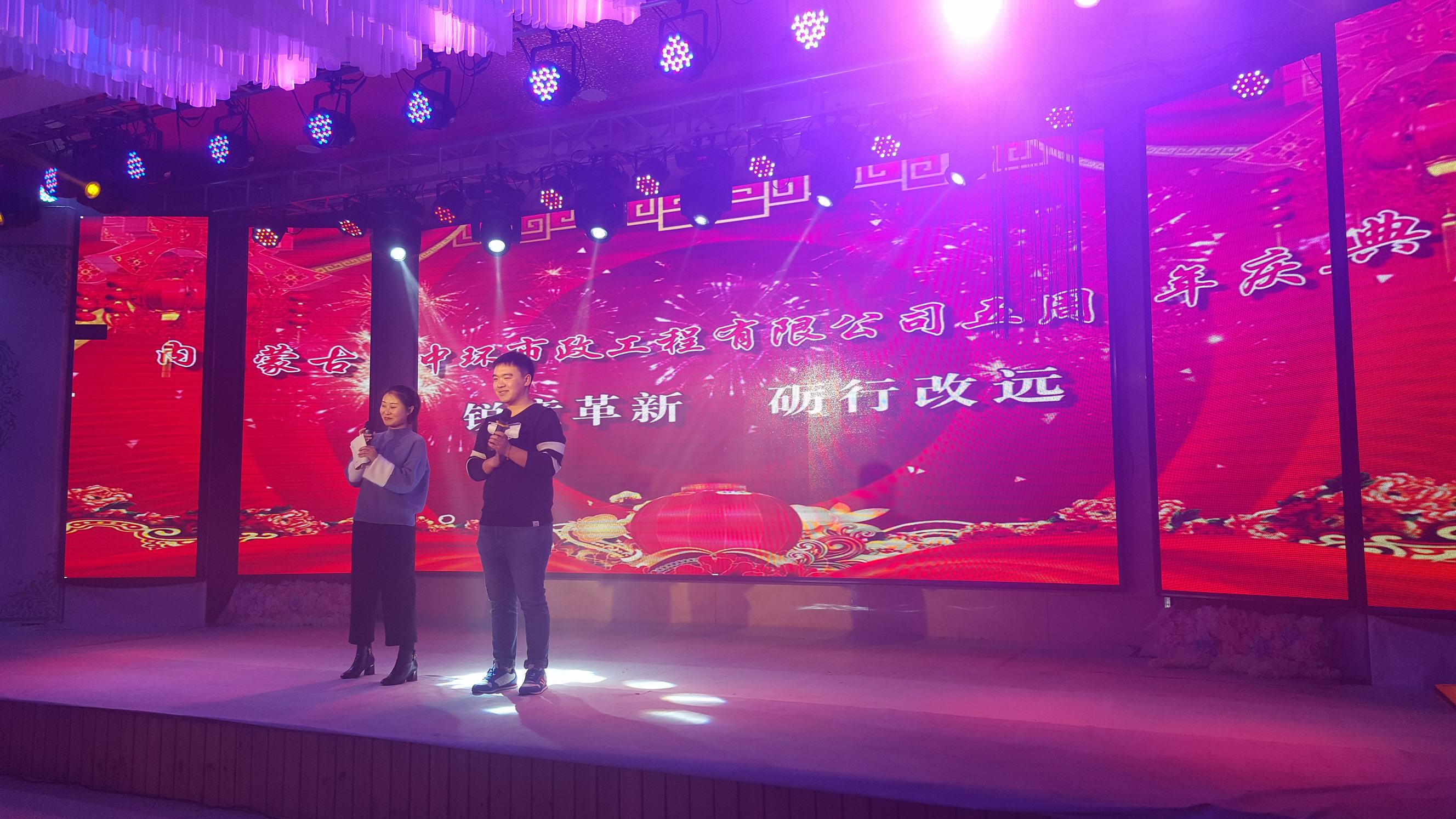 2018年1月18日,内蒙古中环市政工程有限公司隆重举办了公司五周年庆典活动暨公司年会。公司董事长兼总经理王道富介绍了公司近五年的发展历程、取得的工程业绩和公司获得的荣誉;公布了公司确定的下五年发展目标和努力方向。辛勤工作的员工在帅哥美女的主持下表演了他们利用闲暇时间准备的文艺节目,活动中公司的“情哥王子”、“港台巨星”、“相声大师”,亲密无间的小姐妹,患难与共的好兄弟,90后、80后、70后轮番上台,敞开胸怀,放飞心情,特别是安全员田树辉同志声情并茂的朗诵了自己书写的诗词“砥砺前行,拼搏奋进”更是把活动推向了高潮,惊呆了到场的所有员工和嘉宾,展现了我们工程人别样的风采。