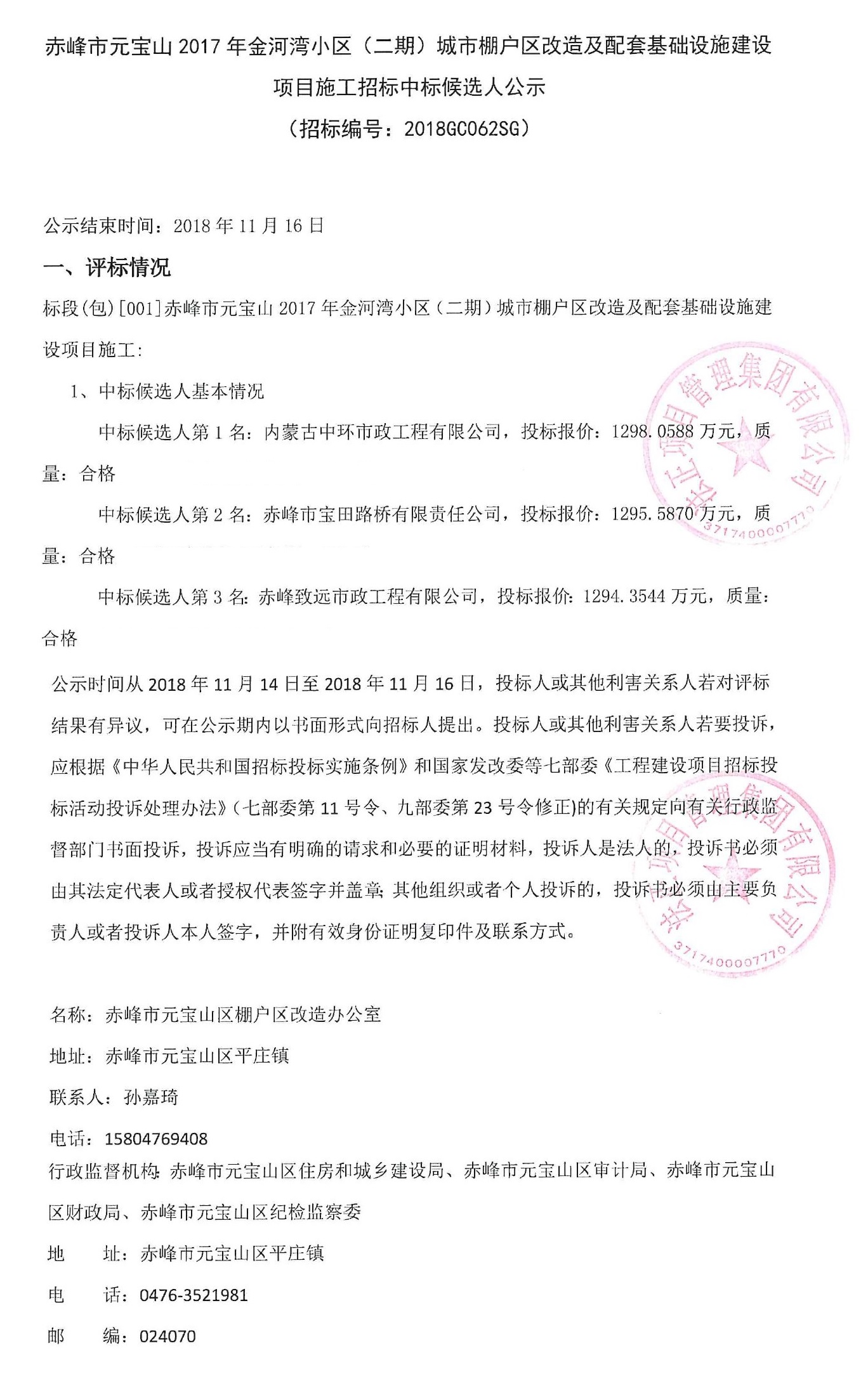 元宝山2017年金河湾小区(二期)城市棚户区改造及配套基础设施建设项目